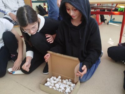 Jako nejzajímavější úspěšnou činnost (kromě celodenního pojídání halloweenských pamlsků) jsme si vybrali přípravu halloweenských omalovánek pro mladší ročníky.