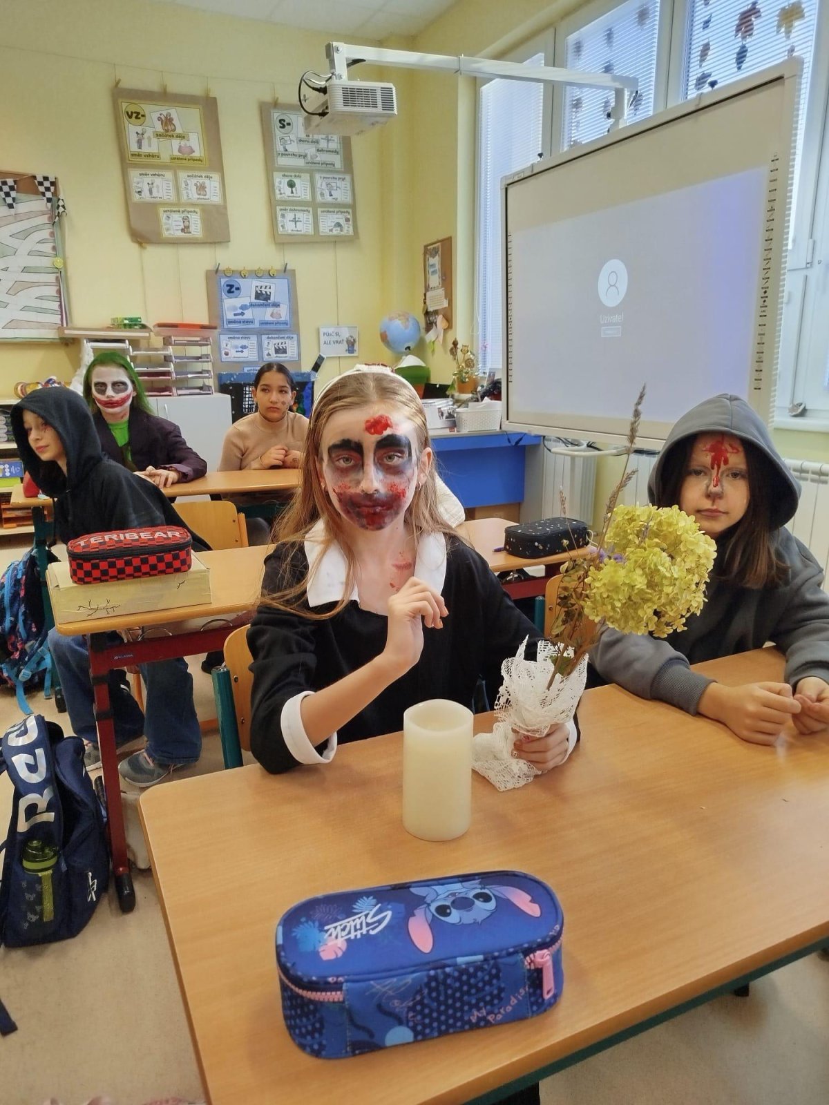 Náš projektový den se nesl v duchu halloweenské atmosféry v naší třídě tak, jak po celé škole. Rozhodně jsme tomuto svátku neudělali ostudu. Naši halloveenskou párty jsme vzali strašidelně, ale i zábavně. Trochu jsme se učili, trochu soutěžili, trochu relaxovali a trochu strašili. Vše jsme pojali v rámci vzdělávání, ale hravou formou. V úvodu jsme si znovu připomněli historii oslav svátku Halloween a osvěžili jsme si také svátek Dušiček, který nás vzápětí čeká.