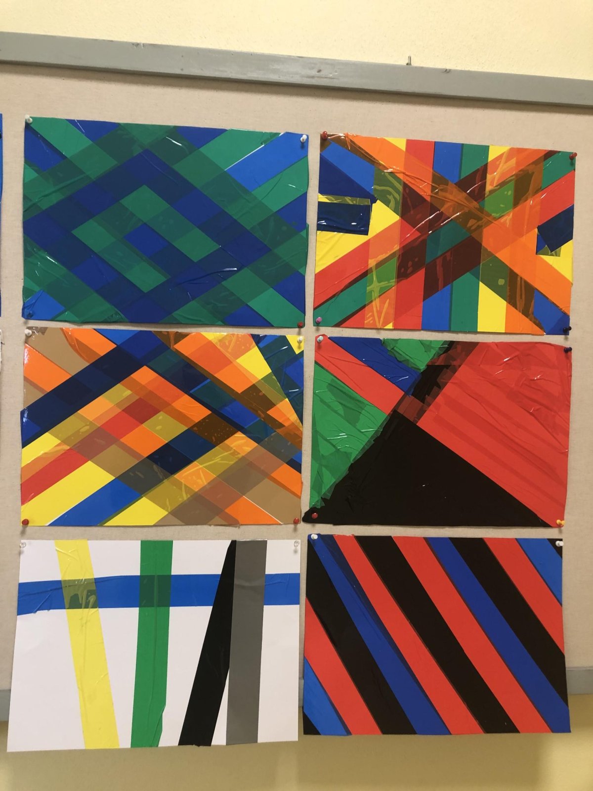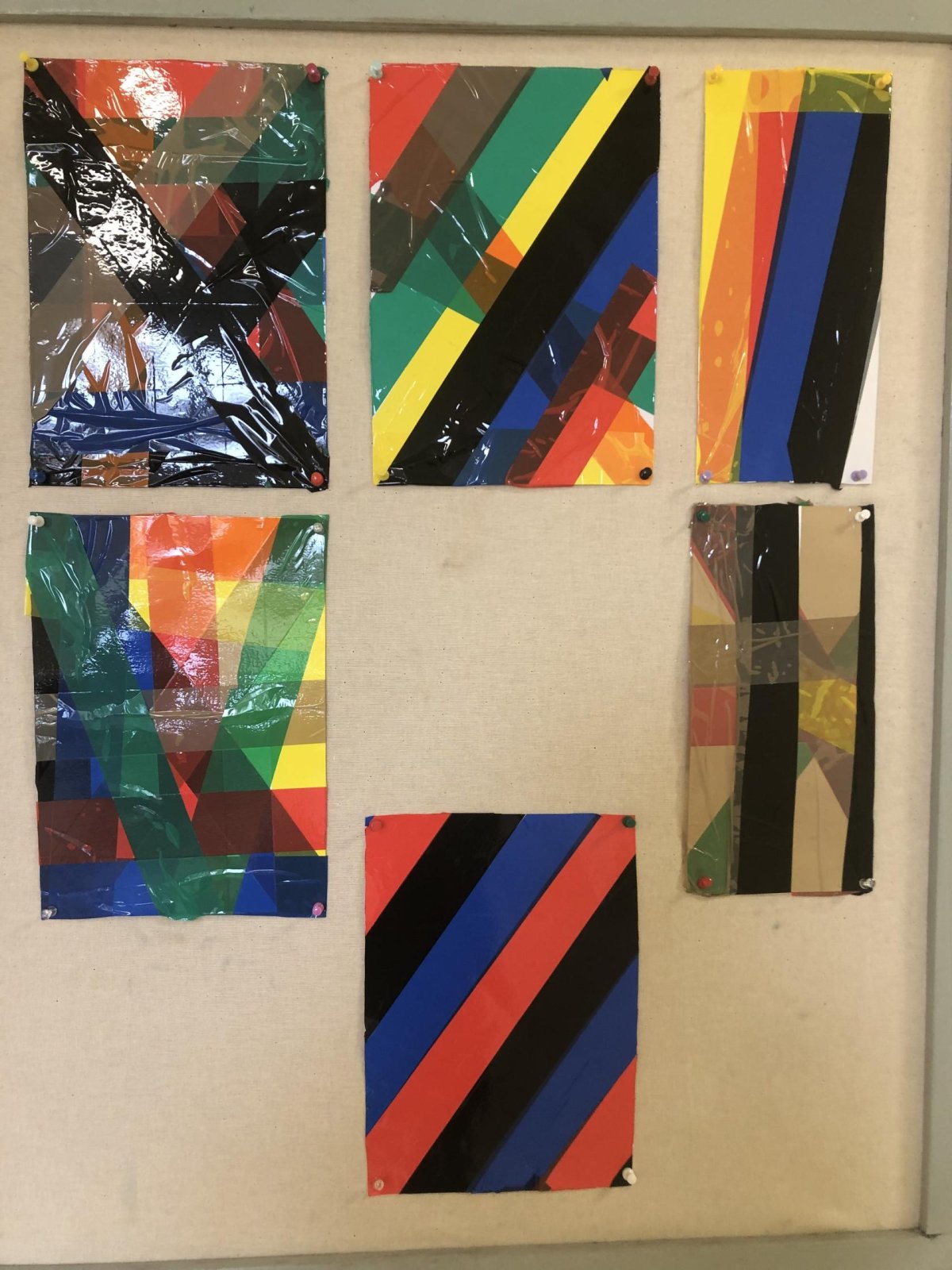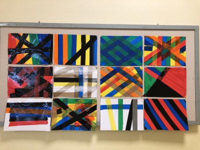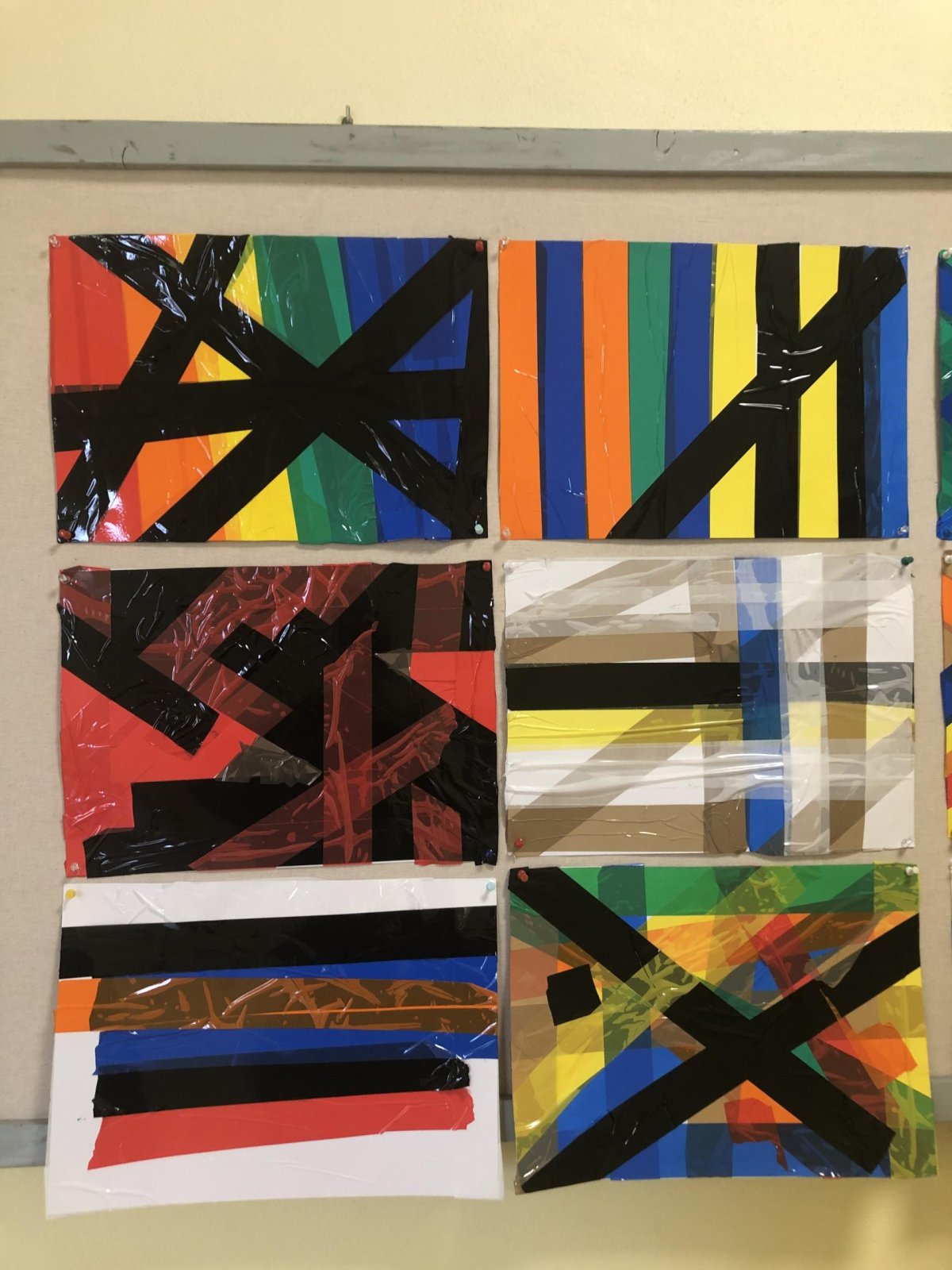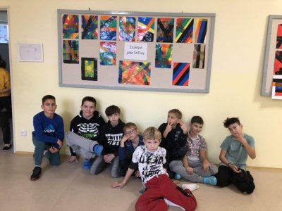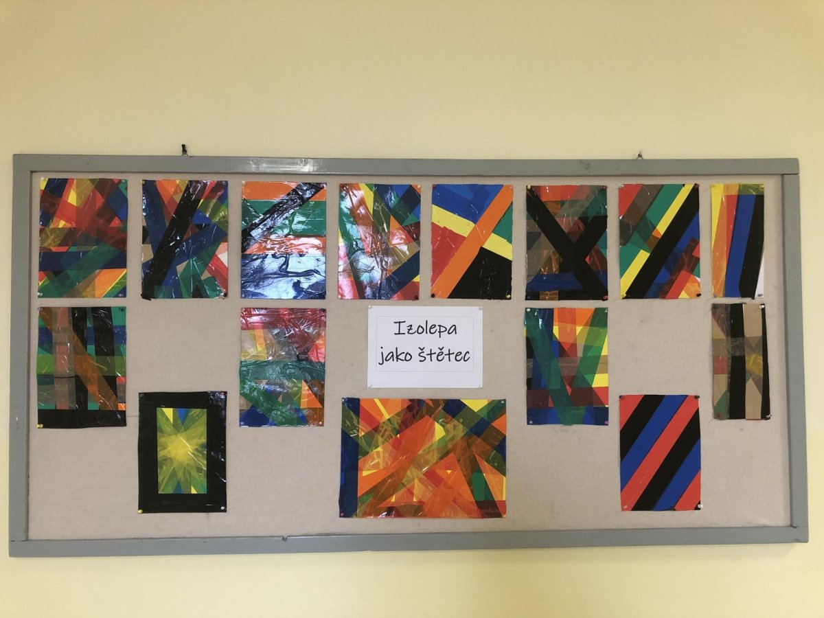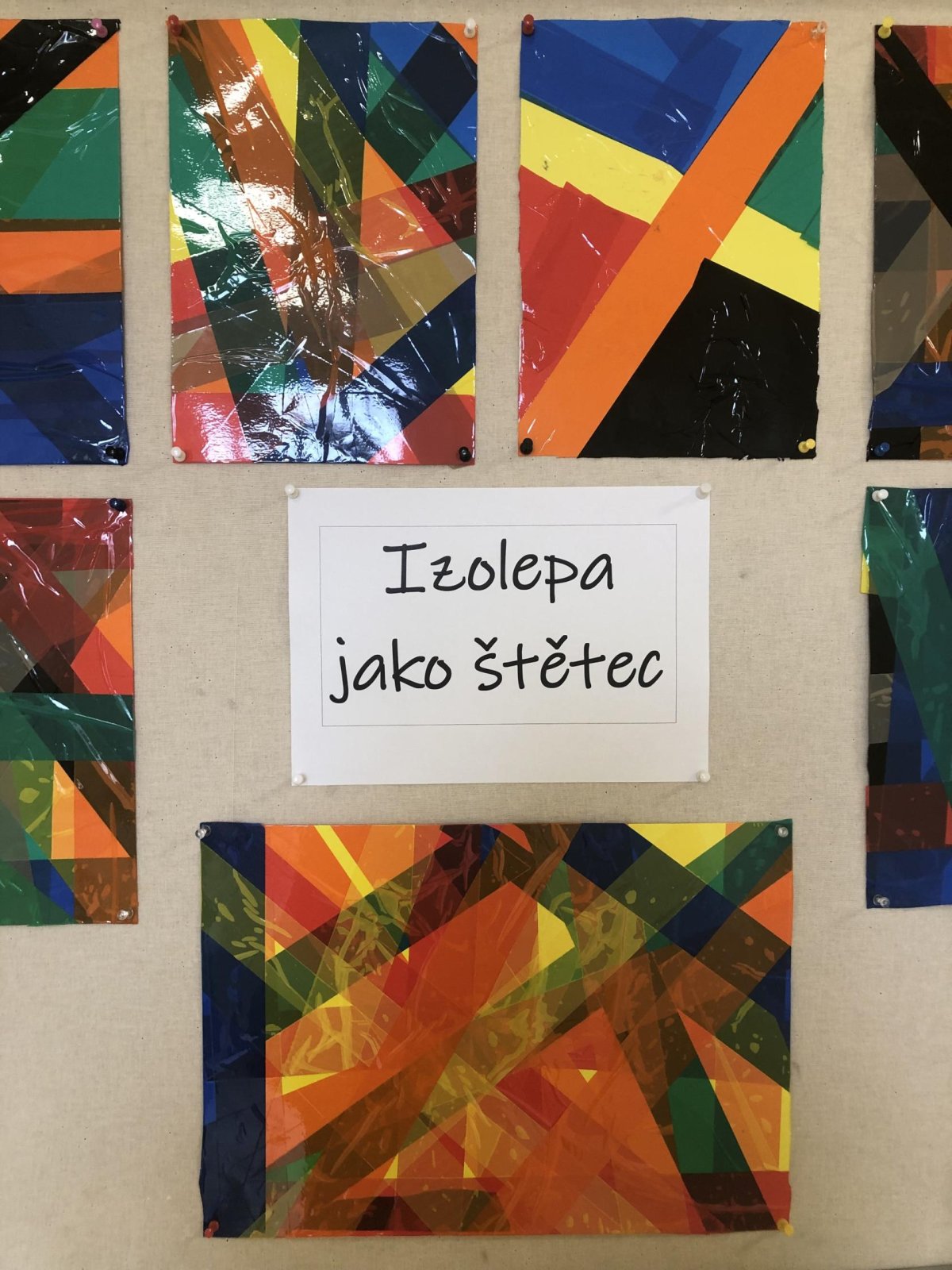 Žáci 5. B si tentokrát ve výuce výtvarné výchovy pohráli s barvami, přesněji řečeno s izolepou. Vytvořili tak různé abstrakce, pod kterými si každý z nás může představit cokoliv.
