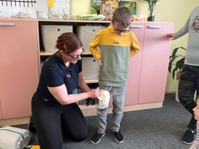 Pondělní ráno 16. března nám zahájila zdravotnice ze záchranné služby, která dětem vysvětlila a ukázala zásady první pomoci. Během programu si děti zkoušely různé postupy a způsoby, jak v případě potřeby pomoci kamarádovi nebo komukoliv jinému. Čas strávený se zdravotnicí Bárou Minaříkovou všechny moc bavil a my se těšíme na nějaké příští setkání.