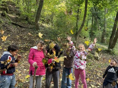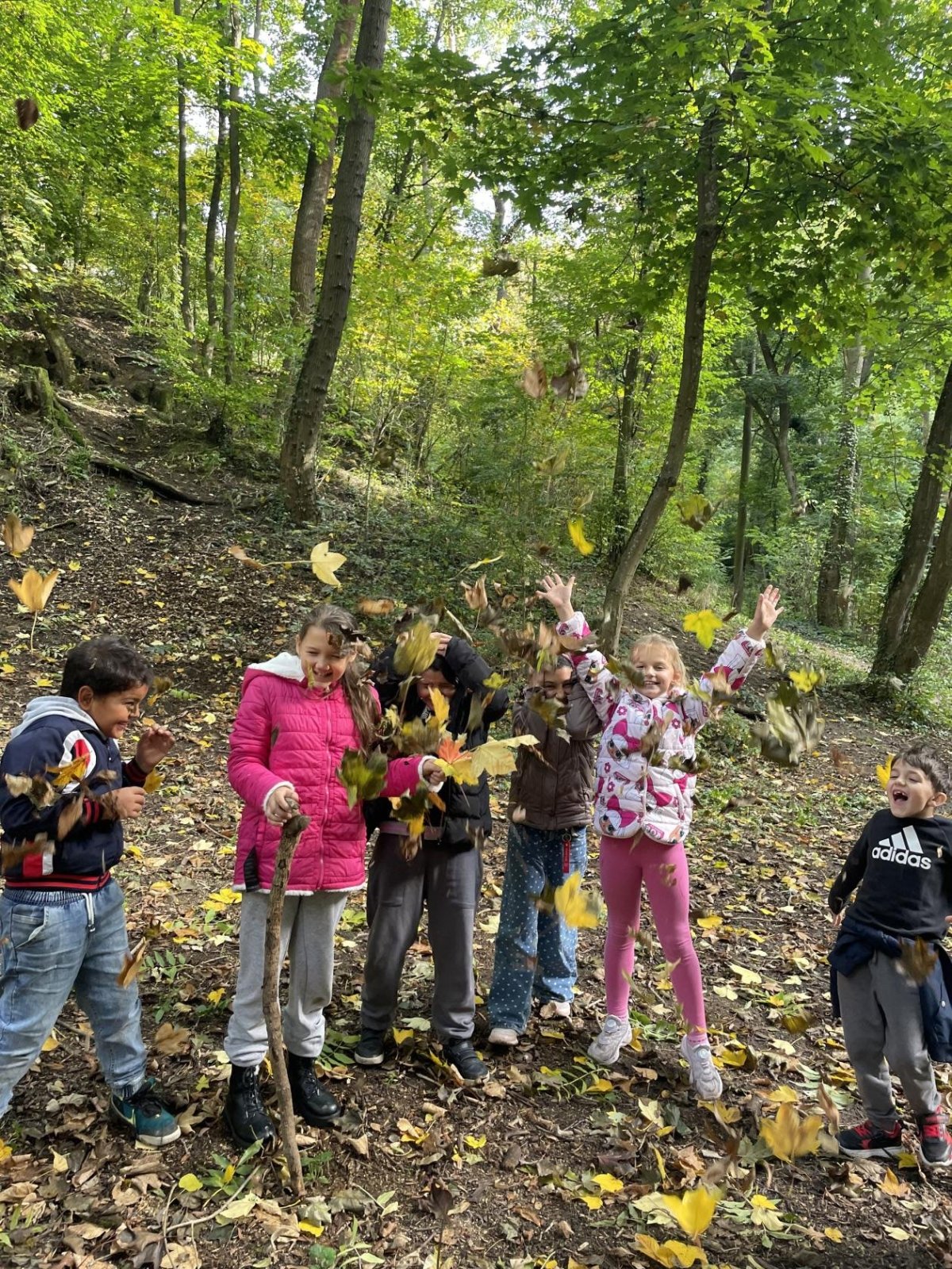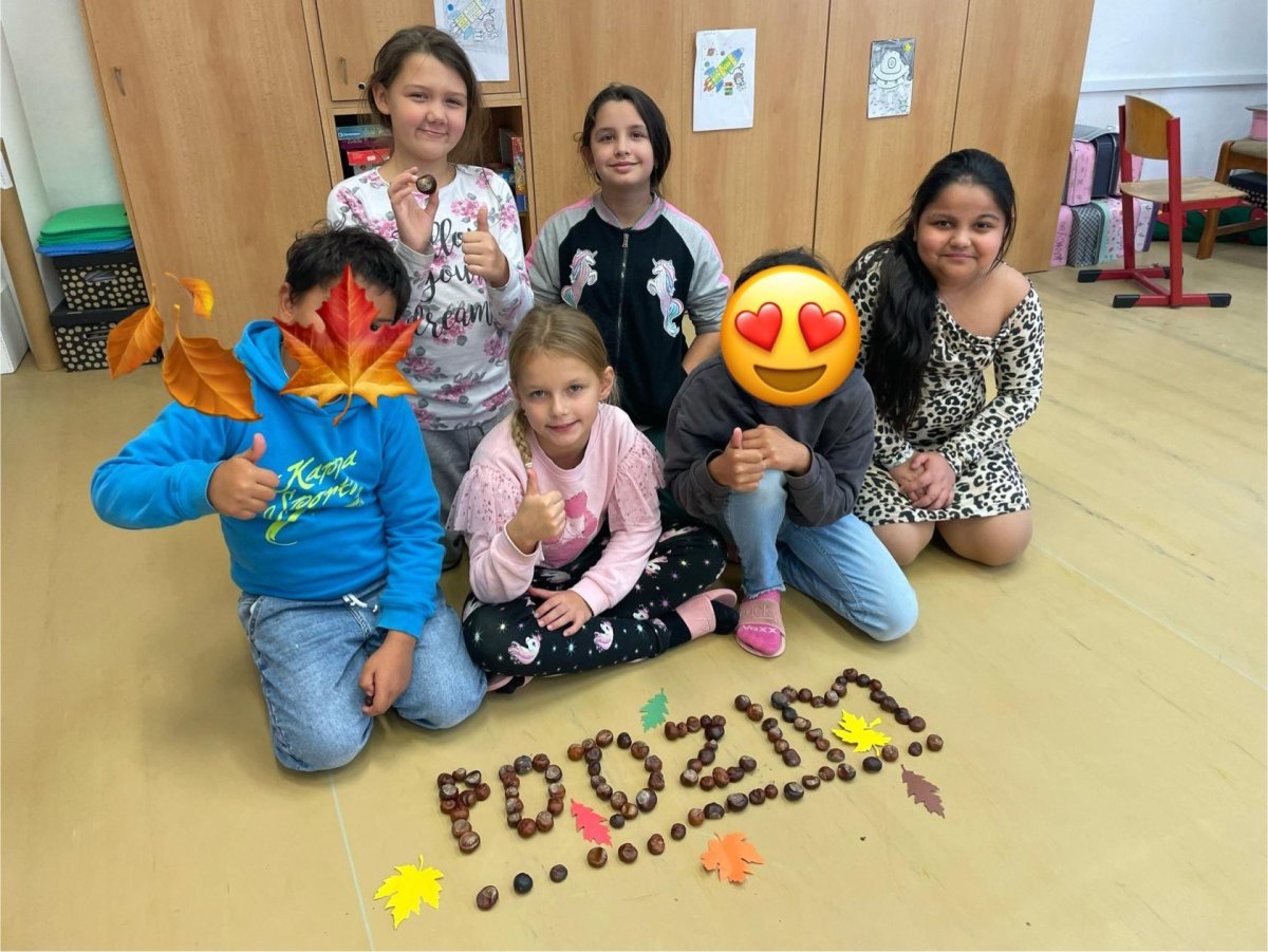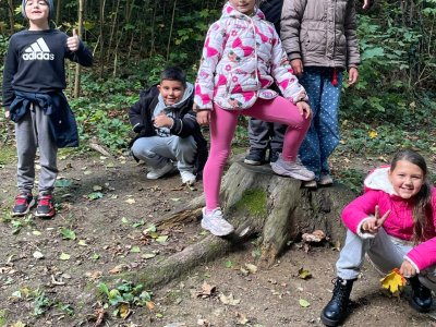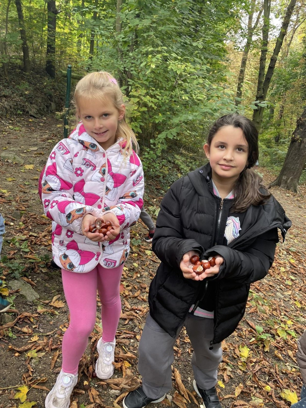 Gránický les nás přivítal šustěním listí pod nohama a jemným větrem, který rozechvíval koruny stromů. Slunce se prodíralo skrz větve a vytvářelo na cestách zlaté skvrny. Každý krok byl jako malý objev – kaštany, žaludy, šípky, barevné listy… příroda nám nabídla svou podzimní paletu v celé kráse.