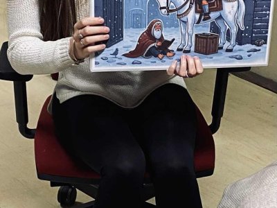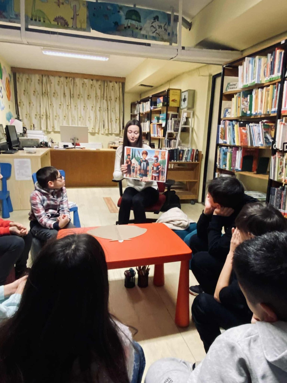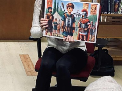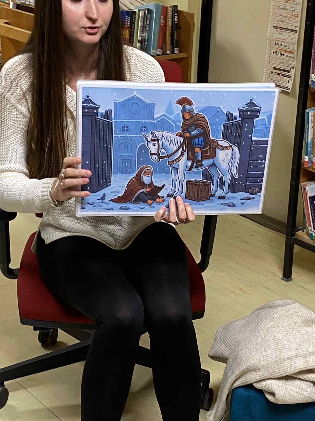 Dnešní návštěva knihovny byla plná hezkých momentů. Knihovnice nám přečetla příběh o sv. Martinovi a pak jsme si společně popovídali o pranostikách – hlavně o tom slavném bílém koni, který se někdy zdrží, jak se mu chce.
