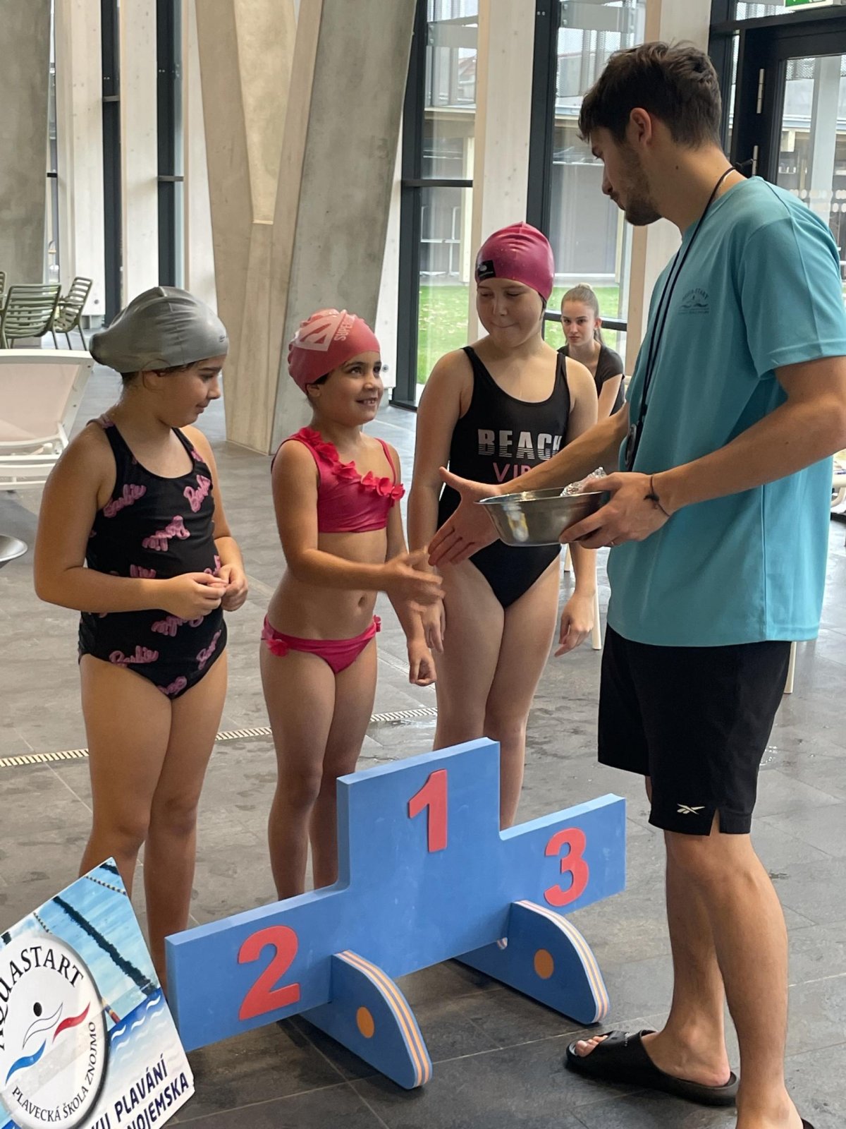 Na konci kurzu se z malých začátečníků stali velcí plavci, kteří se vody už vůbec nebáli. Vrcholem byla závěrečná soutěž, kde si děti mohly vyzkoušet, jak se jim daří plavat na čas. Atmosféra byla napínavá a plná fandění. Někteří žáci dokonce vystoupili na bednu vítězů, což bylo krásné ocenění jejich píle a odvahy.