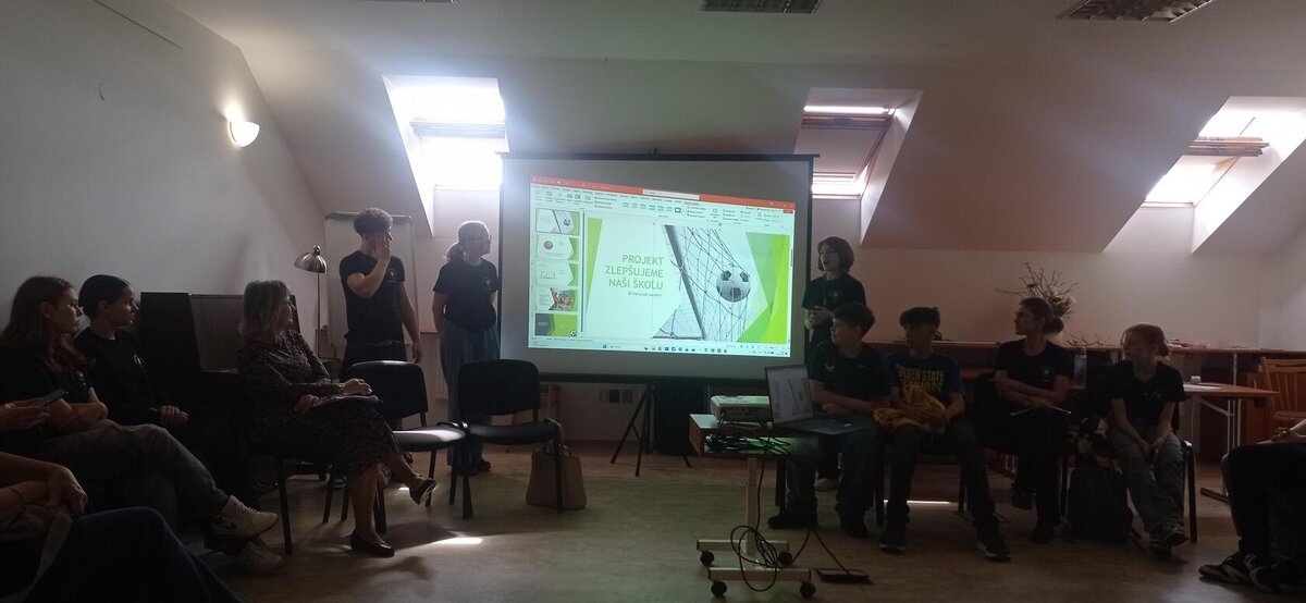 Na dubnové schůzce městského parlamentu naši tři zástupci představili projekt Zlepšujeme naši školu, ve kterém jsme si společně vybrali a odhlasovali plastové branky do tříd. Branky přinesou žákům zábavnější přestávky, více pohybu, aktivní odpočinek i podporu spolupráce. Věříme, že pomohou také k lepší náladě a soustředění v hodinách.