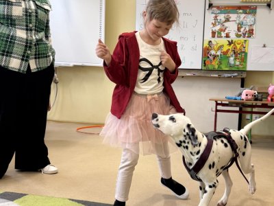 Roztomilého dalmatinka jsme se taky snažili co nejlépe popsat... Je černobílý, hravý, hodný, zvědavý, malý, přátelský, rychlý... no bylo toho hodně.