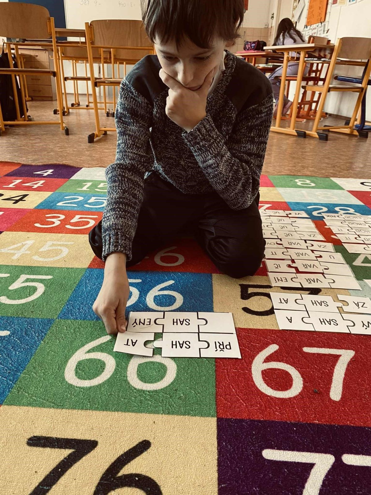 Zapomeňte na suché výklady a nekonečné zápisy do sešitu – u nás se učí v pohybu a barvách! Vytáhli jsme puzzle, rozložili je a začalo velké slovotvorné dobrodružství. Děti hledaly kořeny jako správní lingvističtí detektivové, připojovaly správné předpony a tvořily nová slova, až nám z toho skoro kořenily uši. (Nebo z toho byla radost?)