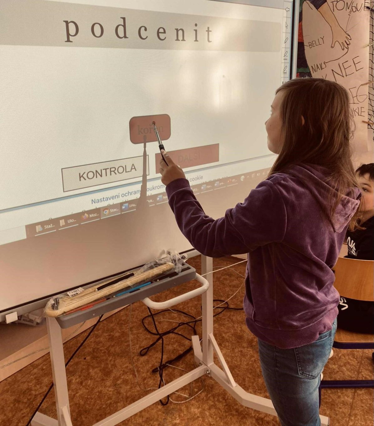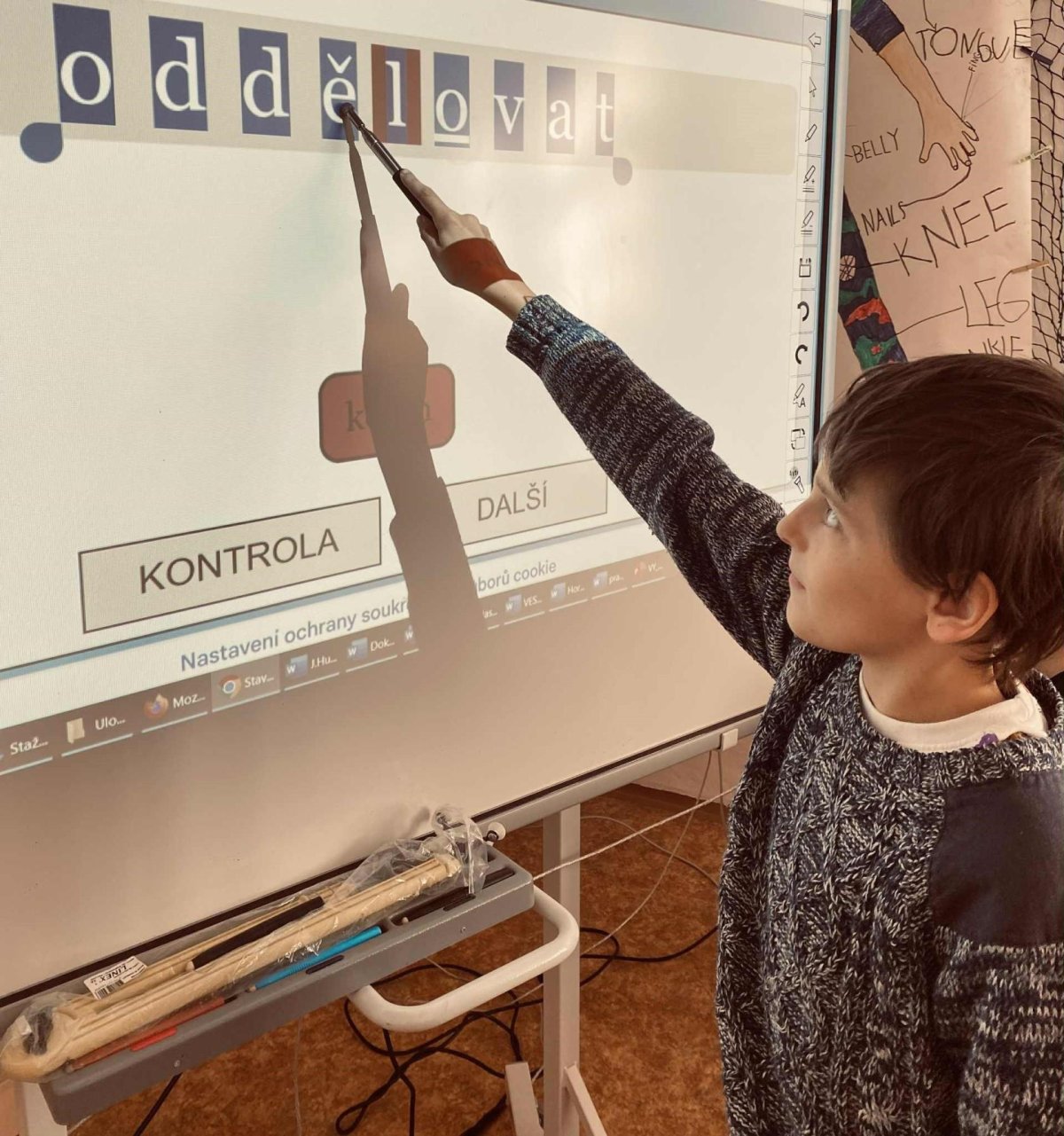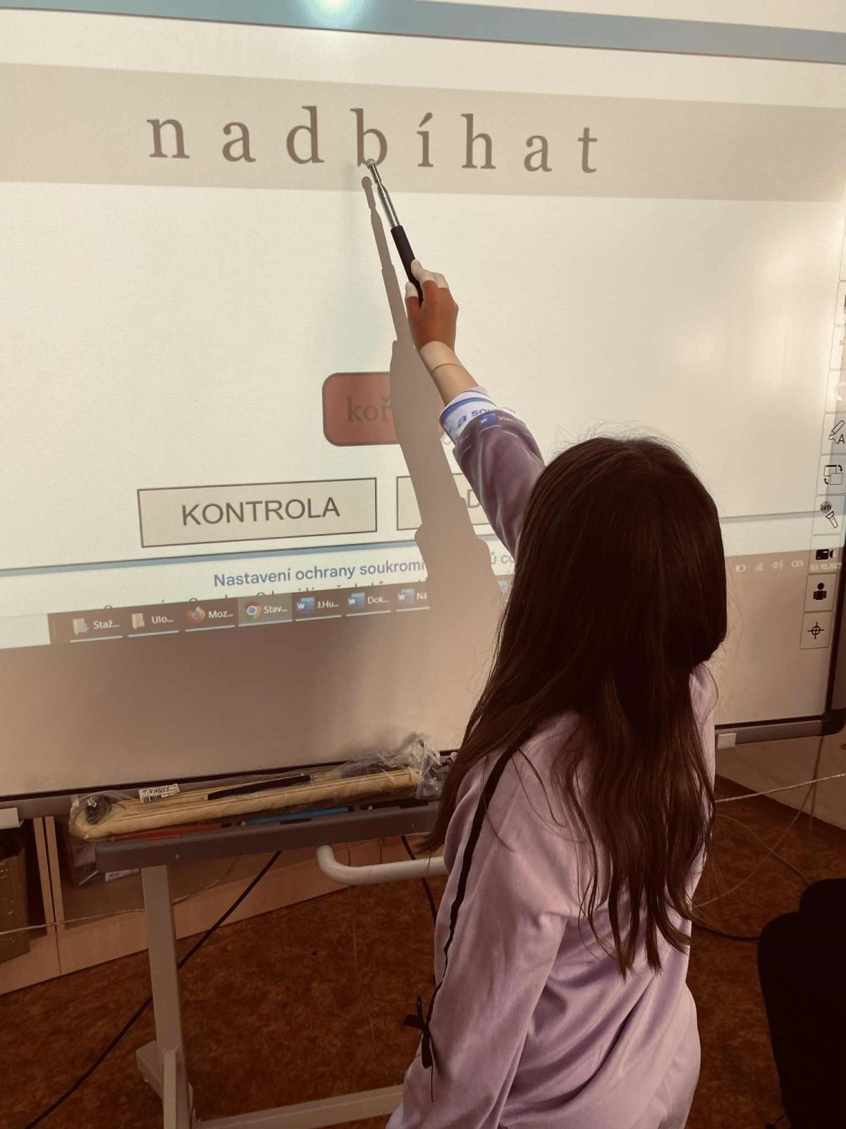 Interaktivní tabule se proměnila v hravé jeviště – střídal se Wordwall, Školákov, a kdo správně složil slovo, sklidil nejen body, ale i pochvalu od spolužáků.