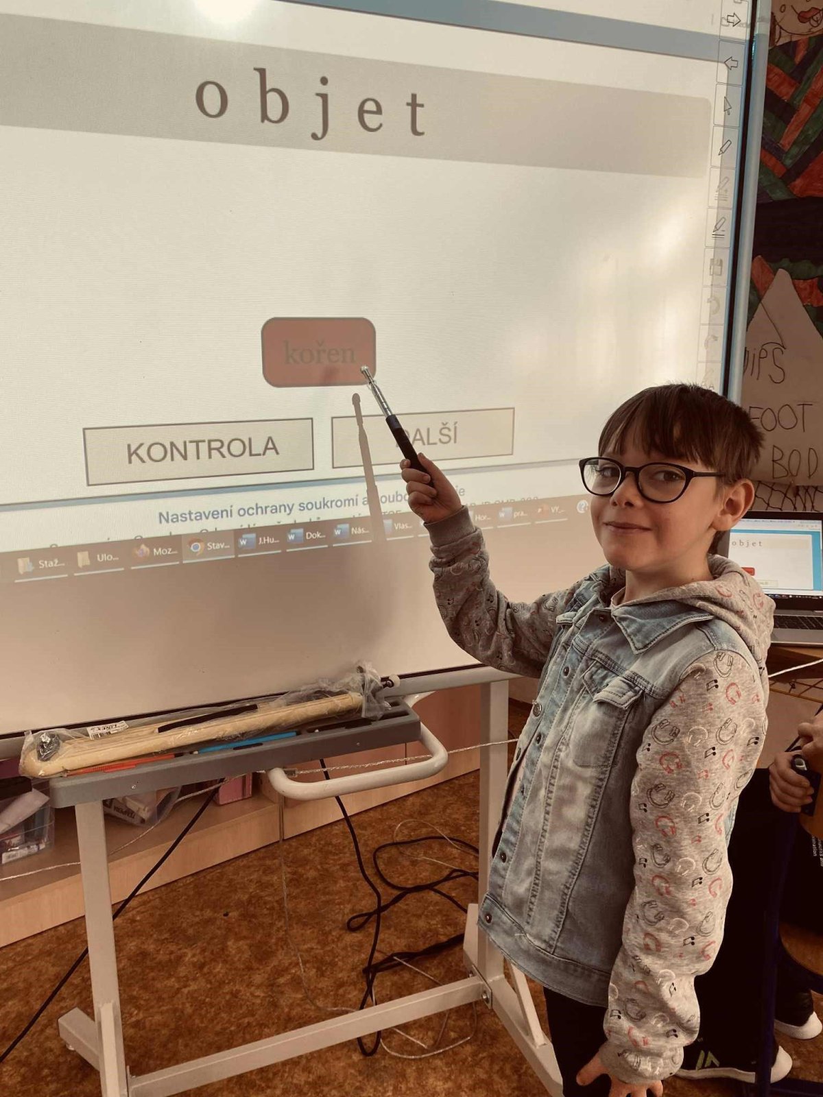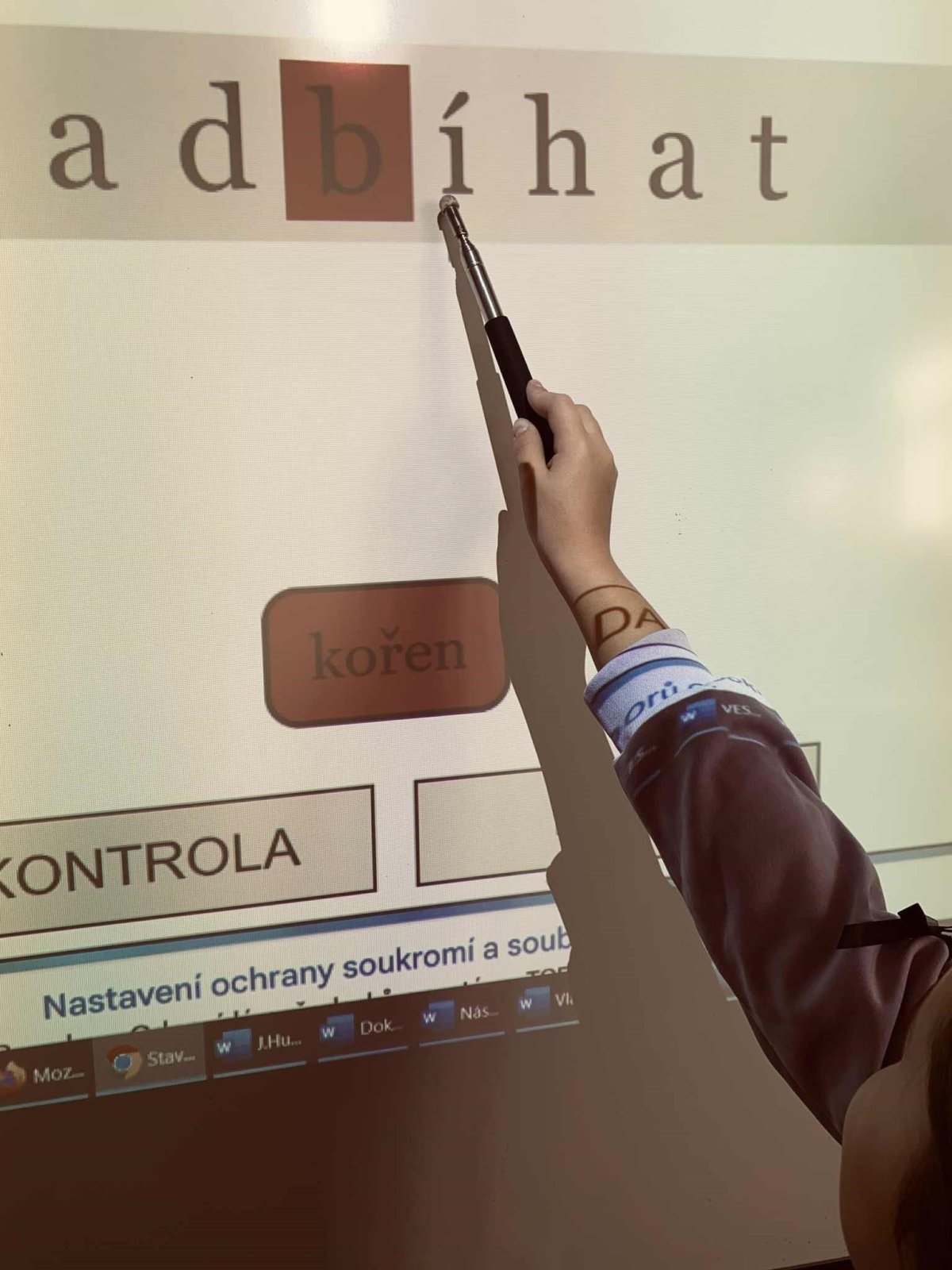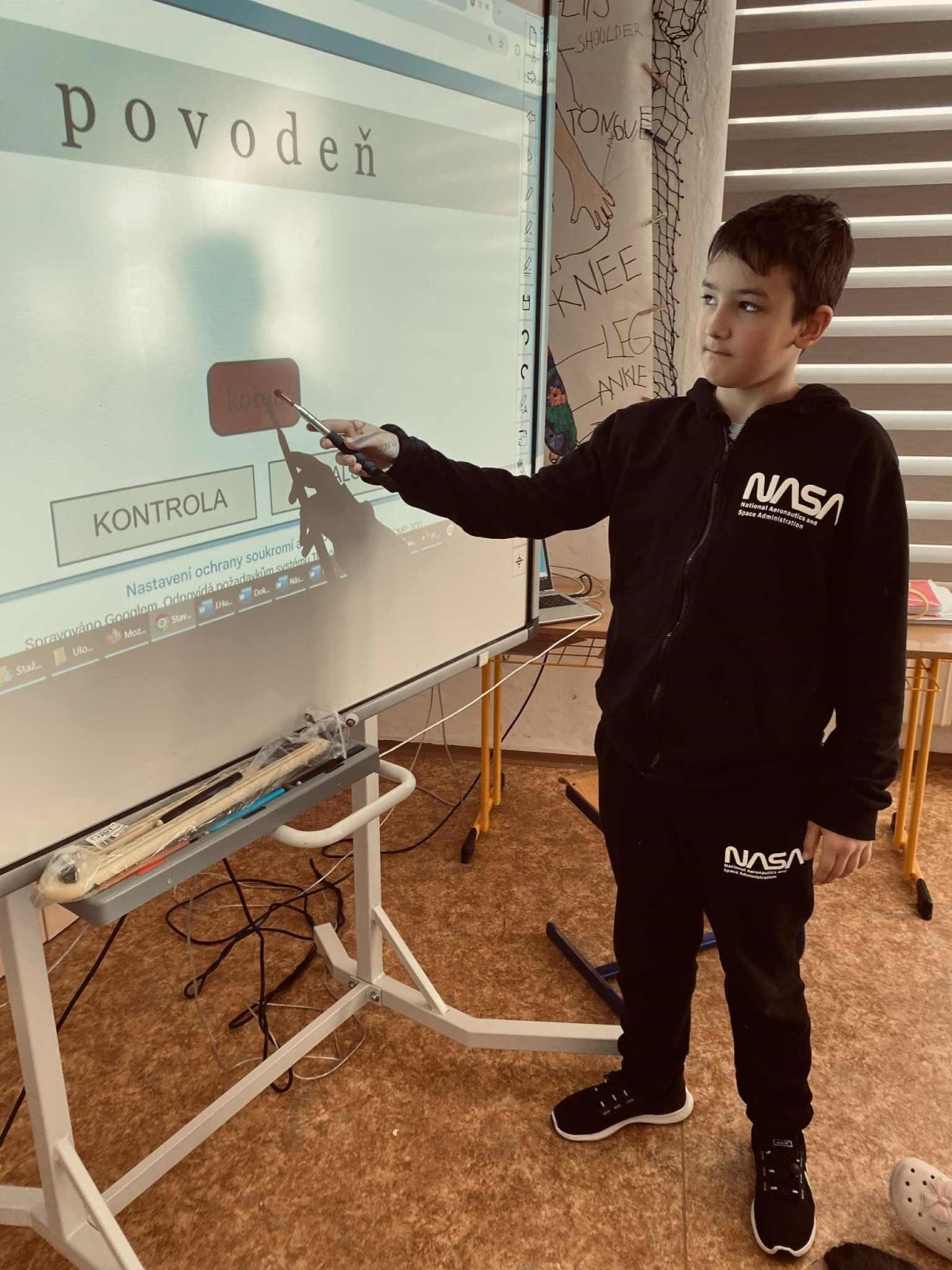 Interaktivní tabule se proměnila v hravé jeviště – střídal se Wordwall, Školákov, a kdo správně složil slovo, sklidil nejen body, ale i pochvalu od spolužáků.